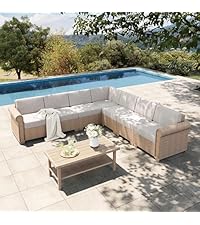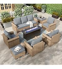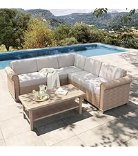 HOUSE 6-Piece Patio Furniture Set, All Weather 7 Seats Outdoor Wicker Sofa with Ottomans, Rattan Patio Conversation Set with 5.5" Thick Cushions and 44" Coffee Table, Grey