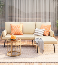 The patio furniture set consists of a sturdy steel frame and PE rattans, all-weather polyester fabric cushions provide a better use experience. Enjoy your set as a 3-person L-shape lounger, or detach the lounger section for a 2-piece relaxation nook.