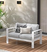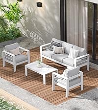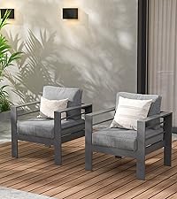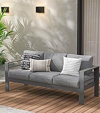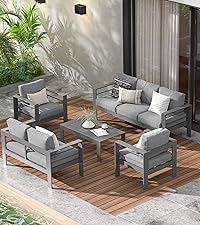 Aluminum Outdoor Patio Furniture Set, Oversized Patio Conversation Sets with Deep Seating and Wide Armrest, Outdoor Sectional Metal Sofa with 5 Inch Cushion and Coffee Table, Dark Grey